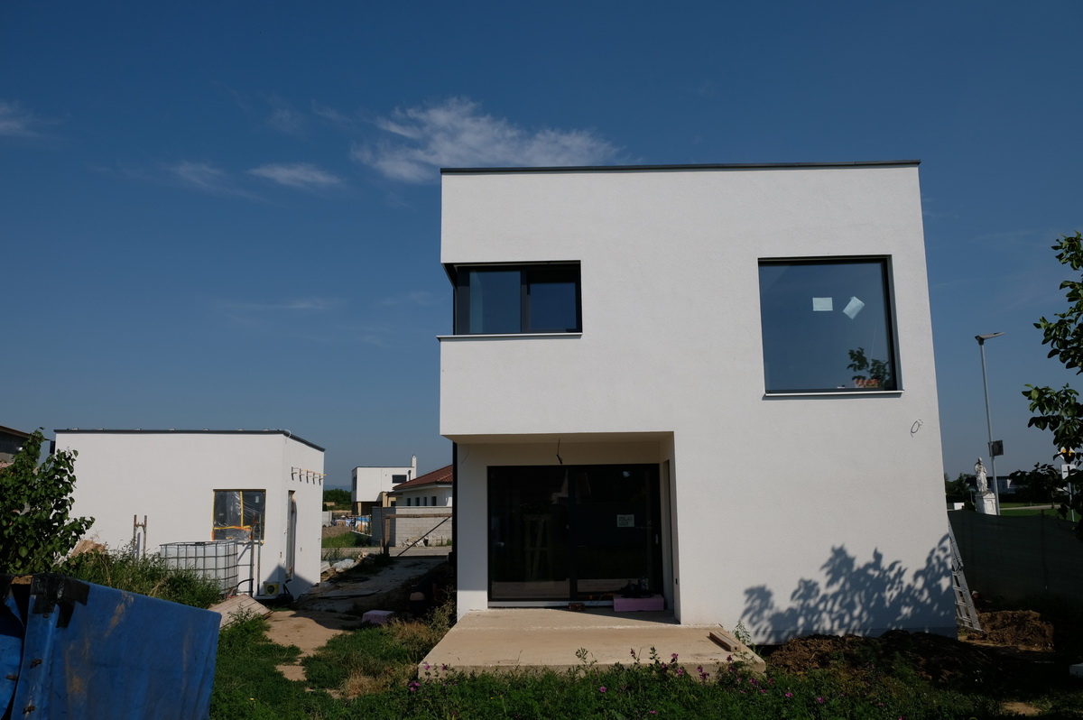 RD SENEC 2 PODLAŽNÝ DOM S KRYTOU TERASOU A GARÁŽOU HRANOLOVO RIEŠENÝ JEDNODUCHÝ DOM REKUPERÁCIA TRIEDA A0 160 M2